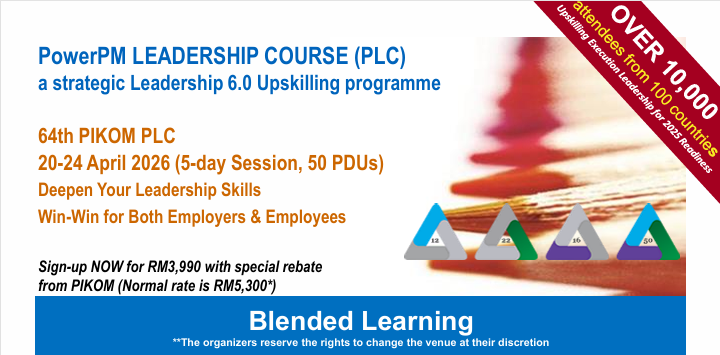 This PIKOM PLC Bootcamp covers a wide spectrum of domains/principles beyond the standard portfolio-programme-project management courses, learning digitally enhanced by CBT-Portal-eLearning-Profiling-IDP-360degree-PMIS6.0 Cloud with Mobility.